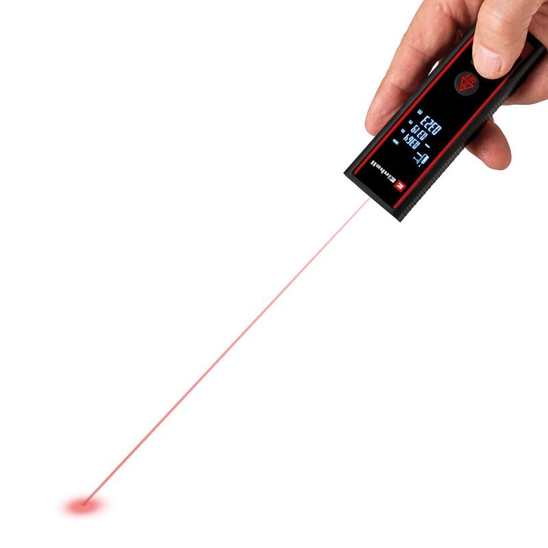Präzise messen im Handumdrehen! Der Laser-Entfernungsmesser von EINHELL misst Entfernungen mit +/- 3 mm Genauigkeit. Flächen, Volumen und Dauermessungen lassen sich einfach erfassen. Die wählbaren Messebenen ab Vorder- oder Unterseite ermöglichen eine flexible Nutzung. Die beleuchtete LCD-Anzeige, Softgrip und separate Laserschaltung garantieren Komfort und Sicherheit. Automatische Abschaltung nach 1 Minute. Inkl. praktischer Tasche. Batterien (2 x 1,5 V AAA) nicht im Lieferumfang enthalten.Messbereich: 0,05 m - 40 mlVE = 1 Stück