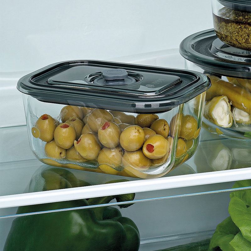 Die rechteckige Frischhaltedose aus robustem Borosilikatglas eignet sich perfekt als Lunchbox. Dank Push & Go-System bleibt alles luftdicht, auslaufsicher und aromatisch frisch. Der Glasbehälter hält Temperaturen bis zu 300 °C stand. Die Frischhaltedose ist ideal zur Aufbewahrung im Kühlschrank oderGefrierschrank oder zum Servieren am Tisch. Sogar mit Deckel ist die Dose mikrowellen- und spülmaschinengeeignet.Größe: 16,3 x 11,5 x 7,3 cmVolumen: 750 ml