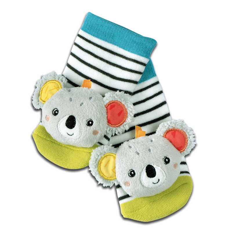 Kleine Füße, große Entdeckungen! Diese Activity-Babysöckchen mit niedlichen Koalas oder Einhörnern fördern spielerisch Greifreflex, Hörsinn und Motorik. Beim Strampeln erklingen sanfte Rasselgeräusche das macht neugierig und hält warm zugleich. Ideal für Babys von 0 bis 12 Monaten. Pfl egeleicht bei 30 °C waschbar. Ein liebevolles Spielzeug und praktisches Accessoire in einem. Größe: 12 cmMotiv: Einhorn, Koala (nach Verfügbarkeit)